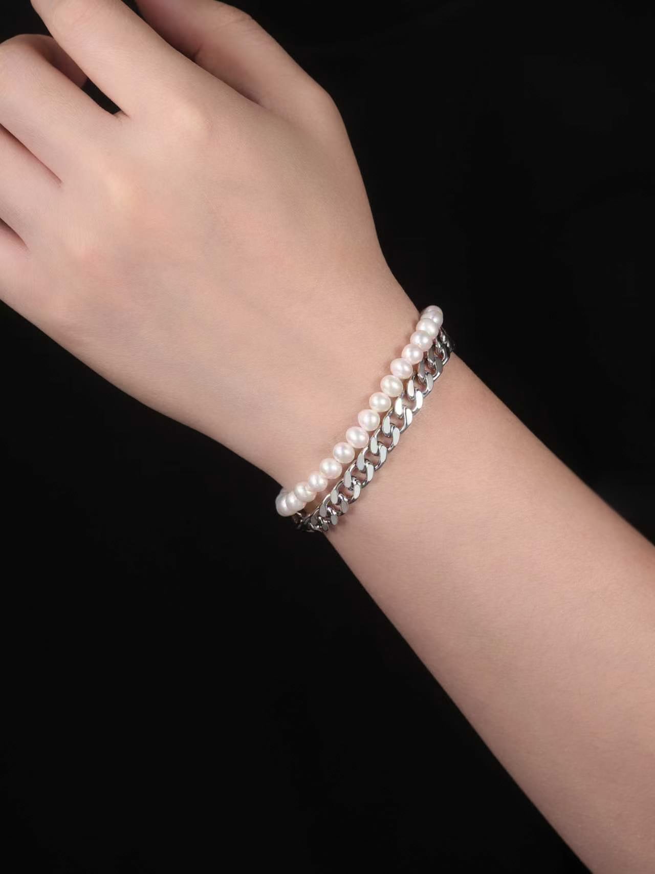 Pearl Clip Double Bracelet - Sterling Silver/Freshwater Pearl